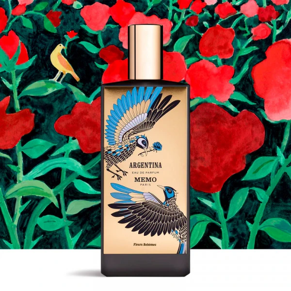 Avec l’Argentine, Memo s’immerge au cœur d’un territoire, d’un pays, au rythme d’une danse, d’un élan passionné. L’Argentine est embrassée dans son ensemble, entraînée dans un seul mouvement ; celui d’un tango tournant. Une danse de mélange, de voyage et des formes de corolles apparaissent sur la piste de danse. Comme une rose, emblématique du parfum, reine des fleurs et symbole d’un amour ardent. Un floral aromatique au fond doux et chaleureux, vous enveloppe d’une manière élégante et délicate, où la rose et le oud se rencontrent dans une danse de tango.