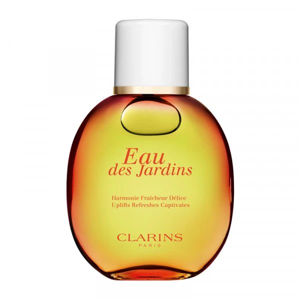 La légendaire Eau Dynamisante Clarins devient l’Eau des Jardins, florale et pétillante. Cette eau de toilette, qui parfume et inspire la joie, est composée à 93% d’ingrédients d’origine naturelle. Elle est idéale pour chasser les coups de blues et apporter une dose d’énergie le matin. Les notes de tête vivifiantes de citron, d’orange et de pamplemousse rafraîchissent toute la peau. Puis les notes de cœur de laurier, menthe poivrée et géranium, associées aux notes équilibrantes de cèdre, apportent une agréable sensation de gaieté et de légèreté. L’extrait de bourgeon de sorbier bio ravive l’éclat et s’associe à l’extrait de bourgeon de cassis bio, aux propriétés apaisantes, pour laisser la peau rayonnante. Son flacon vert rend hommage à la nature.