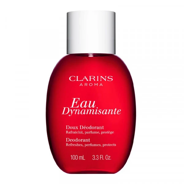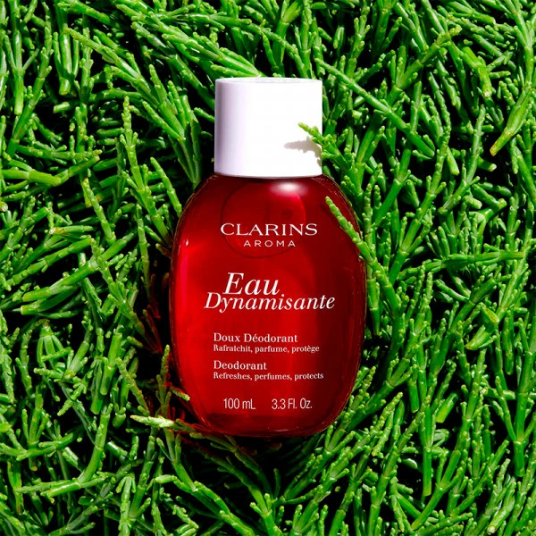 L’iconique Clarins Dynamisante Eau est proposée en spray déodorant pour prévenir et neutraliser en continu les odeurs. Laisse sur la peau un délicat parfum aux notes fraîches et vivifiantes de l’Eau de Soin.