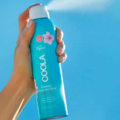 Un écran solaire transparent sans aérosol SPF 50 qui se vaporise facilement.