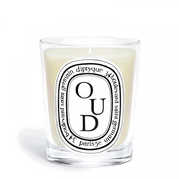 Un voyage au coeur de l’Orient. La bougie Oud remplit la pièce du parfum dense et envoûtant de ce bois ancien et plus précieux que l’or.
