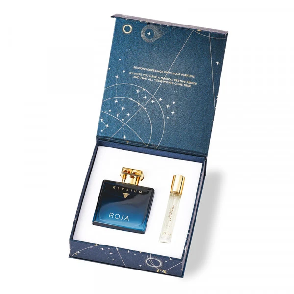 Roja Parfums a créé un superbe coffret pour la période de Noël. La présentation spéciale comprend un flacon de 100 ml d’Elysium Parfum Cologne et un atomiseur de 10 ml d’Elysium Eau Intense.