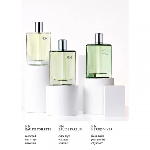 Avec ce troisième opus de la ligne H24, la parfumeur Hermès Christine Nagel poursuit sa pratique botanique sur les traces d’un homme moderne en mouvement. L’eau de parfum H24 Herbes Vives recrée la sensation de redécouvrir la nature urbaine après la pluie. Le parfum allie la puissance d’un bouquet d’herbes fraîches, la texture d’une barbotine de poire et la vivacité d’une molécule high-tech, Physcool®.