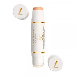 - Sun Perfect Sun Clear & Tinted stick SPF50 est un stick double face qui offre un effet matifiant immédiat du côté clair et un effet correcteur immédiat de l’autre.