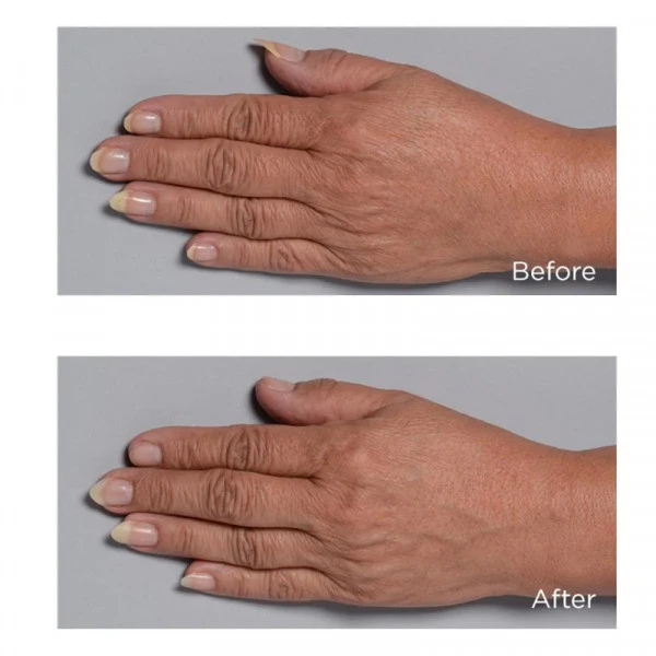 Ce traitement multifonctionnel renforce, lisse et régénère l’apparence de la peau fine et rugueuse des mains grâce à une hydratation intense et atténue l’apparence des taches brunes, des veines et de la pigmentation.