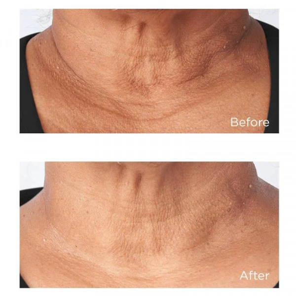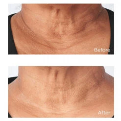 Appliquer une quantité généreuse sur la peau propre et sèche du cou et de la mâchoire. Massez de bas en haut, en effectuant des mouvements doux, et toujours en direction des oreilles pour favoriser l’effet liftant et raffermissant.