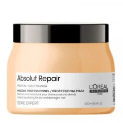 Le masque Absolut Repair pour cheveux épais offre une réparation intense grâce à sa formule enrichie en protéine de quinoa doré. Réduit visiblement les dommages de 77 %, laissant les cheveux brillants, doux et faciles à coiffer, avec une texture soyeuse sans résidus.