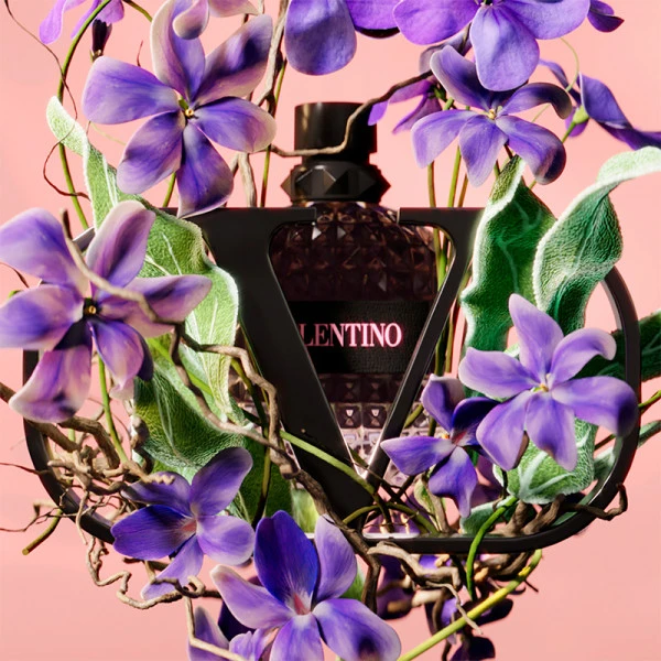 Le flacon rend hommage au motif iconique Valentino Rockstud. Cette petite forme pyramidale, inspirée de l’architecture de Rome, est la signature caractéristique de Valentino. Le flacon élégant et classique est réinventé grâce à la signature rose audacieuse de Valentino. Chez Valentino, le rose est un symbole punk.